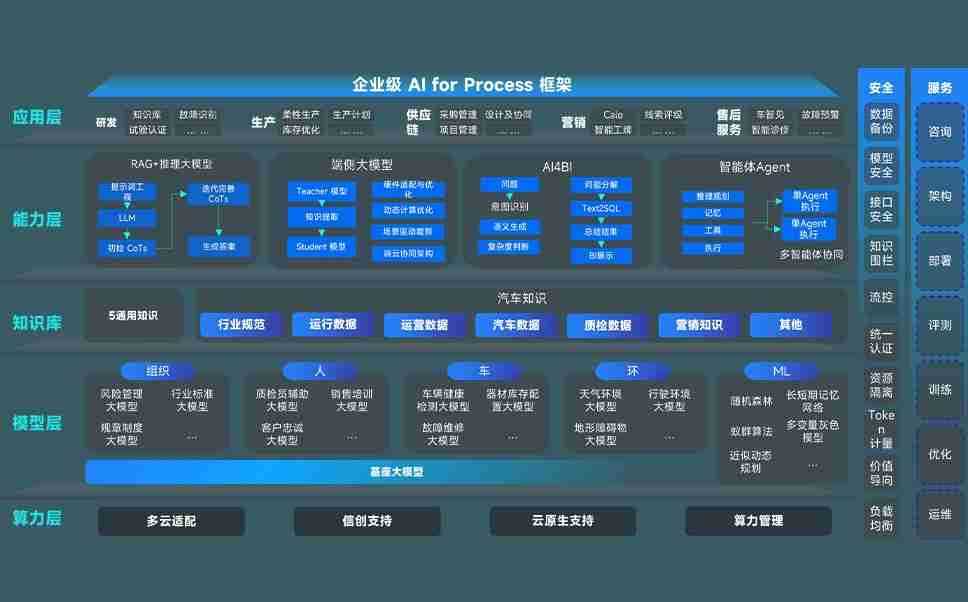 南宫电子游戏问学智车解决方案是一套基于AI技术的汽车行业智能化系统,,覆盖从底层算力到顶层AI应用的全栈方案。。。。方案由算力层、、模型层和应用层组成:算力层,,方案支持多种一体机配置,,,,具备云端灵活部署、、、多云适配以及动态优化计算资源的能力;模型层,,南宫电子游戏问学平台版提供了企业级AI应用一站式构建与管理平台,,支持基于后训练强化技术的汽车企业专属模型的训练、、、、评测和运营;应用层,,,南宫电子游戏问学DeepSeek版提供包括超级员工、、智能招采、、、智能营销、、、、智能客服、、、AI for BI等一系列解决方案,,可助力汽车行业实现数字化转型,,,,让管理更智能、、、响应更敏捷。。。
