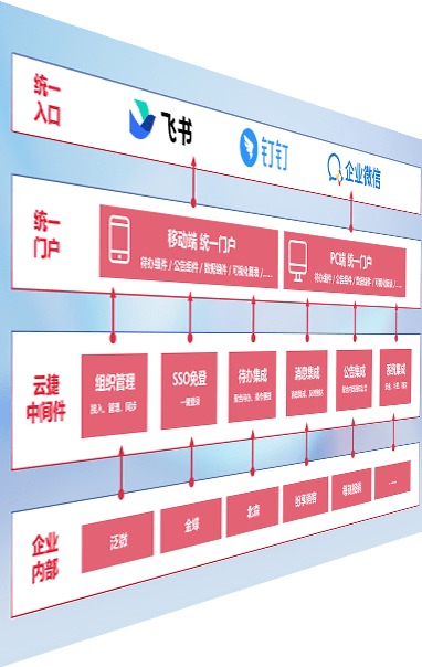 对协作平台提供支持服务,,,支持企业应用与协作平台对接,,包含组织同步、、消息集成、、待办集成等。。支持目前主流的协作平台:钉钉、、、企微和飞书。。