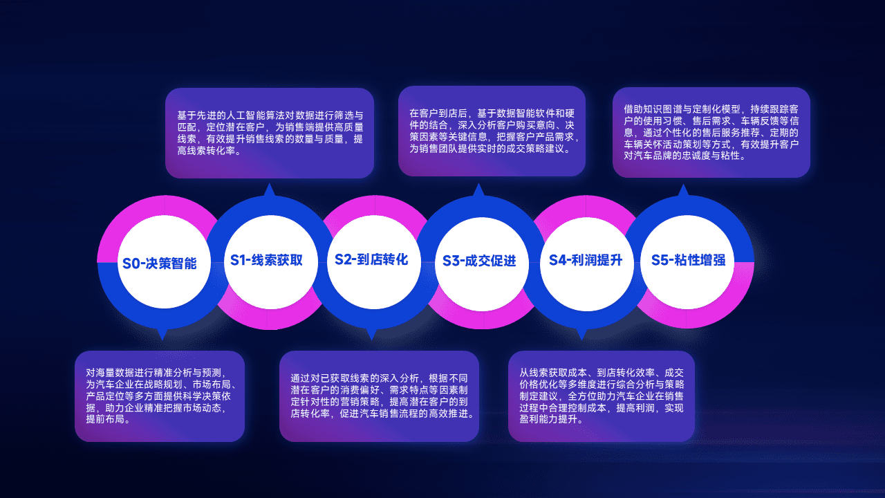 通过拓宽潜在客户来源、、、优化线索分配并提高到店转化率,,,以增强销售效率。。。同时,,利用线索数据不断优化分析模型,,,,有效提升转化率,,,扩大营销影响力。。